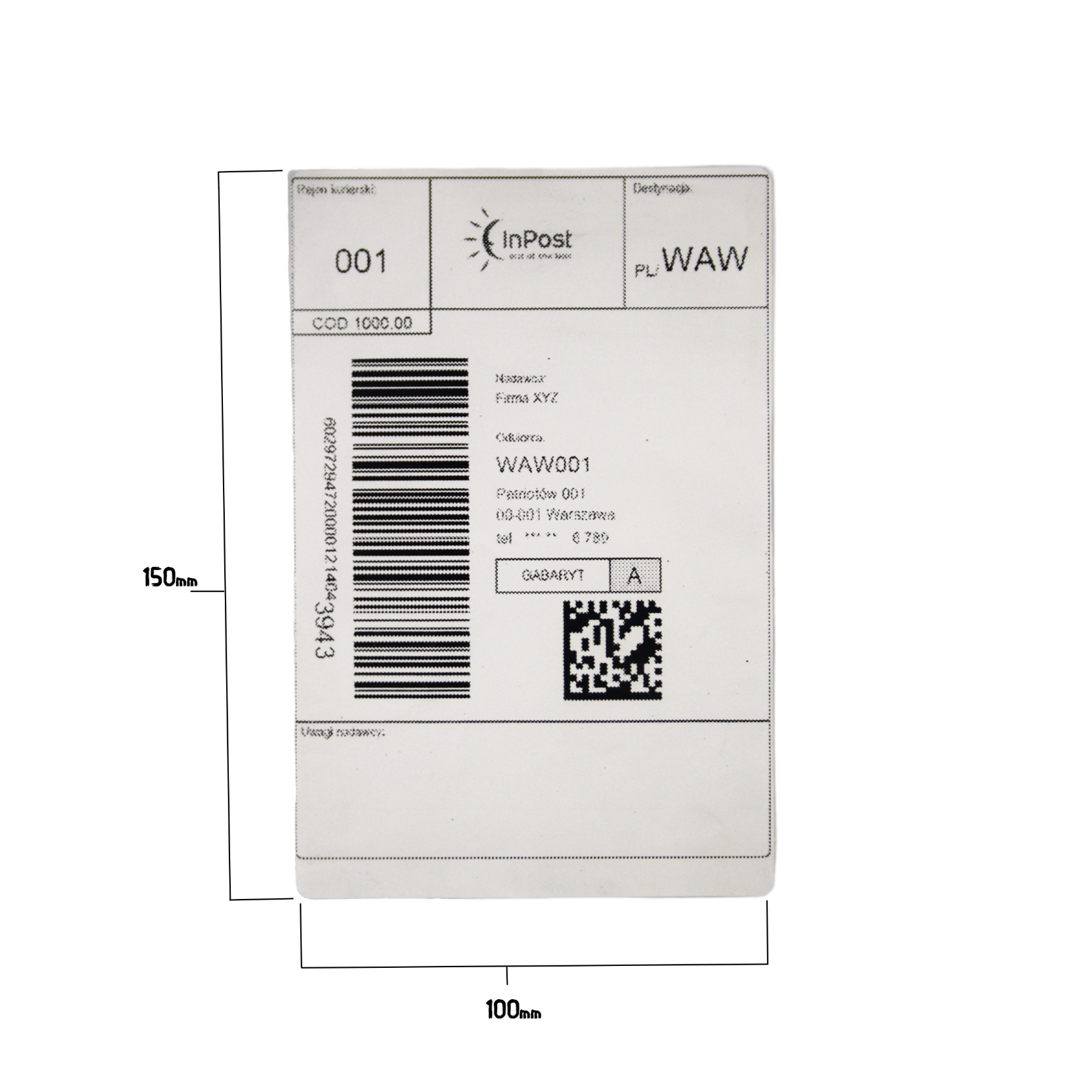 Etykiety kurierskie o wymiarach 100×150 mm . Samoprzylepne, idealnie przylegają do różnych powierzchni, takich jak paczki czy przesyłki. Każda rolka zawiera 500 sztuk etykiet, co gwarantuje długotrwałe wykorzystanie.