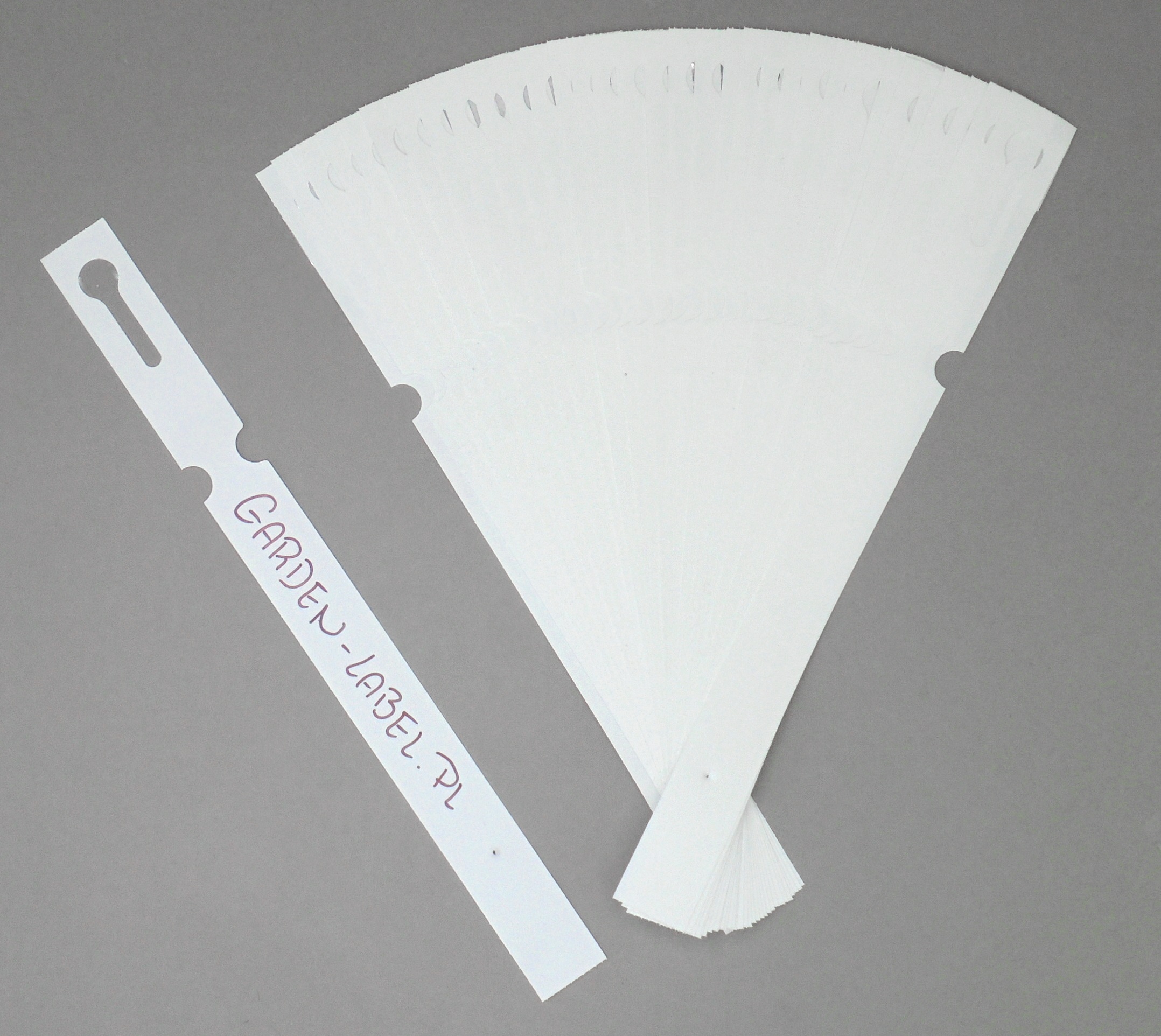 Profesjonalne etykiety ogrodnicze wykonane z trwałego HDPE o wymiarach 200x17mm (17×200), przeznaczone do opisywania markerem permanentnym.