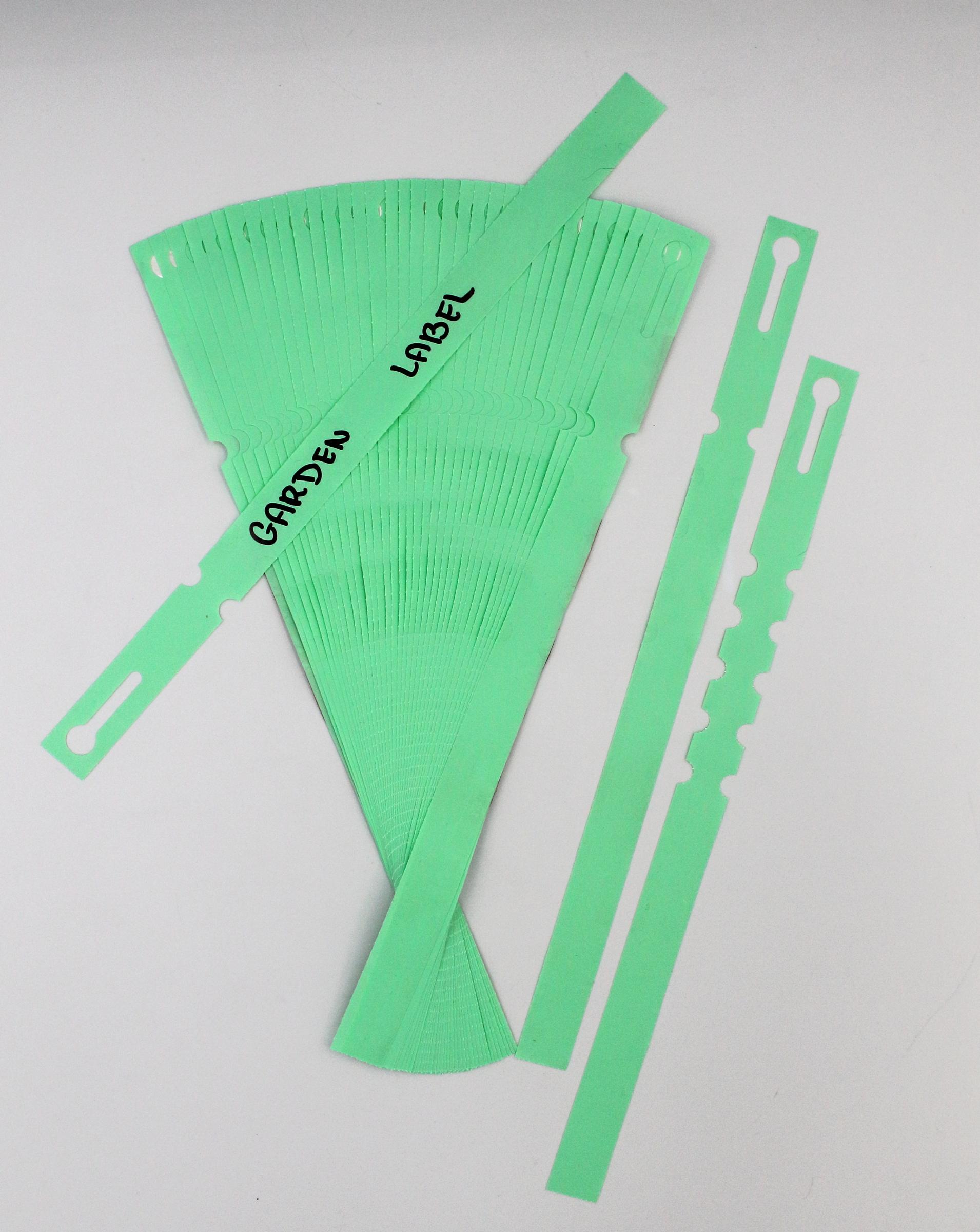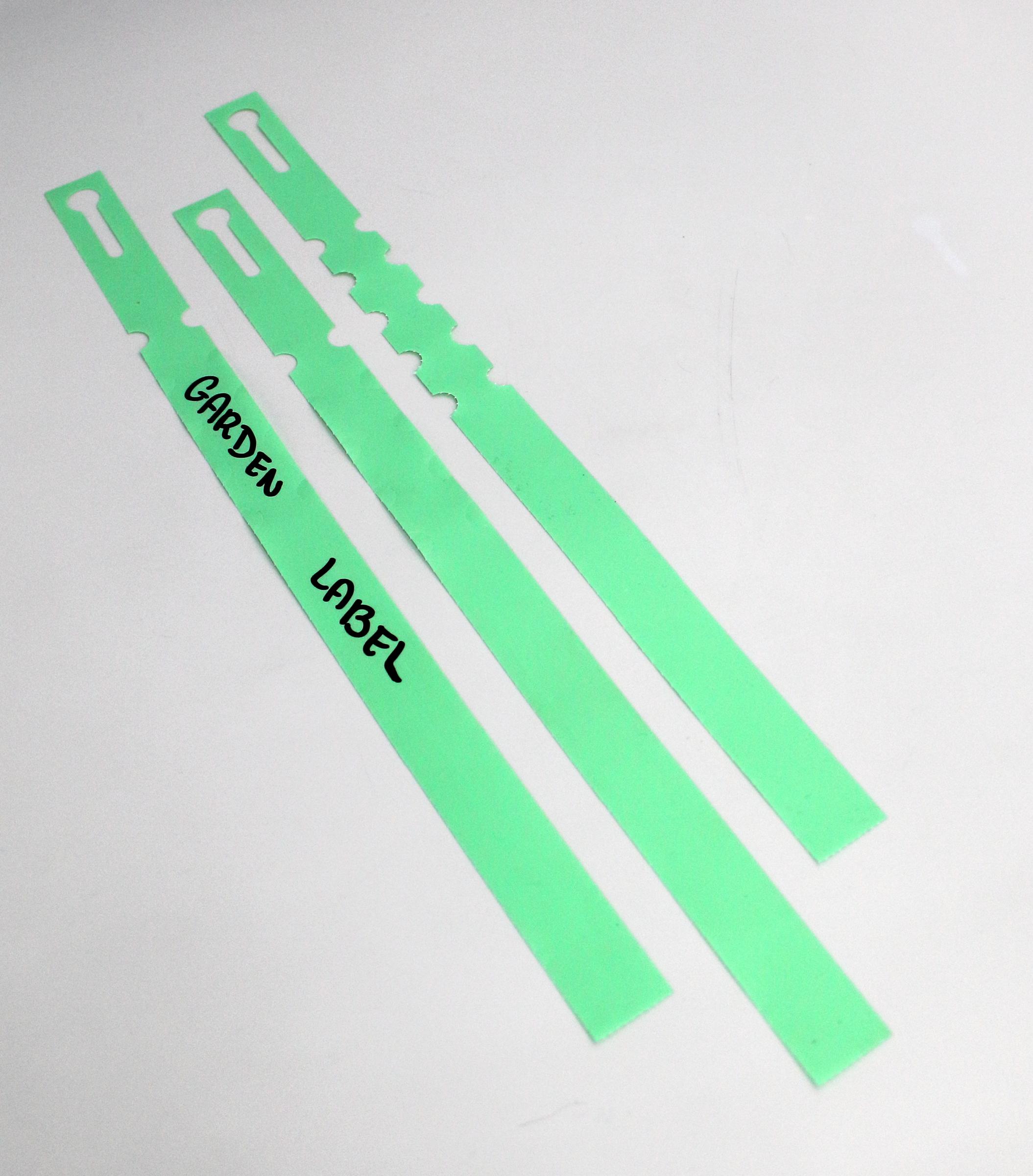 Profesjonalne etykiety ogrodnicze wykonane z trwałego HDPE o wymiarach 300×20 mm (20×300), przeznaczone do opisywania markerem permanentnym.