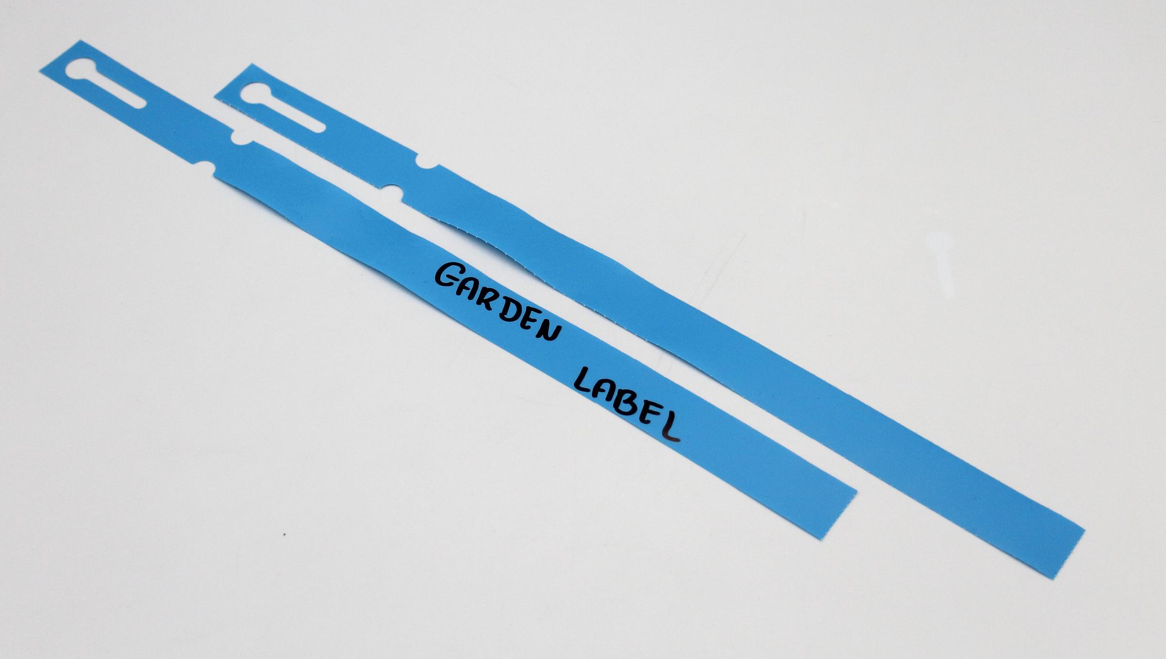 Profesjonalne etykiety ogrodnicze wykonane z trwałego HDPE o wymiarach 400×20 mm (20×400), przeznaczone do opisywania markerem permanentnym.