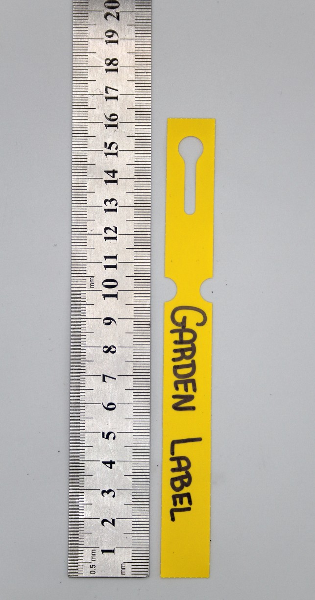Profesjonalne etykiety ogrodnicze wykonane z trwałego HDPE o wymiarach 160x17mm (17×160), przeznaczone do druku termotransferowego oraz opisywania markerem permanentnym.