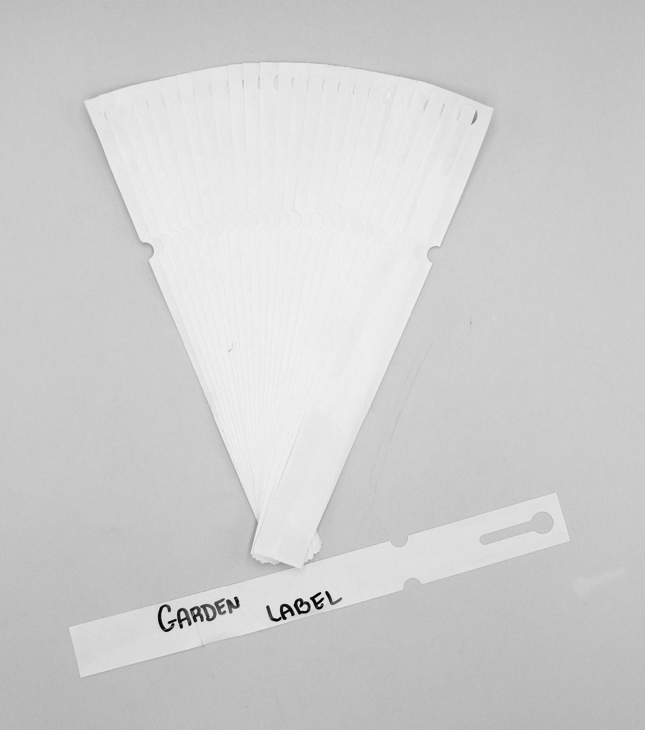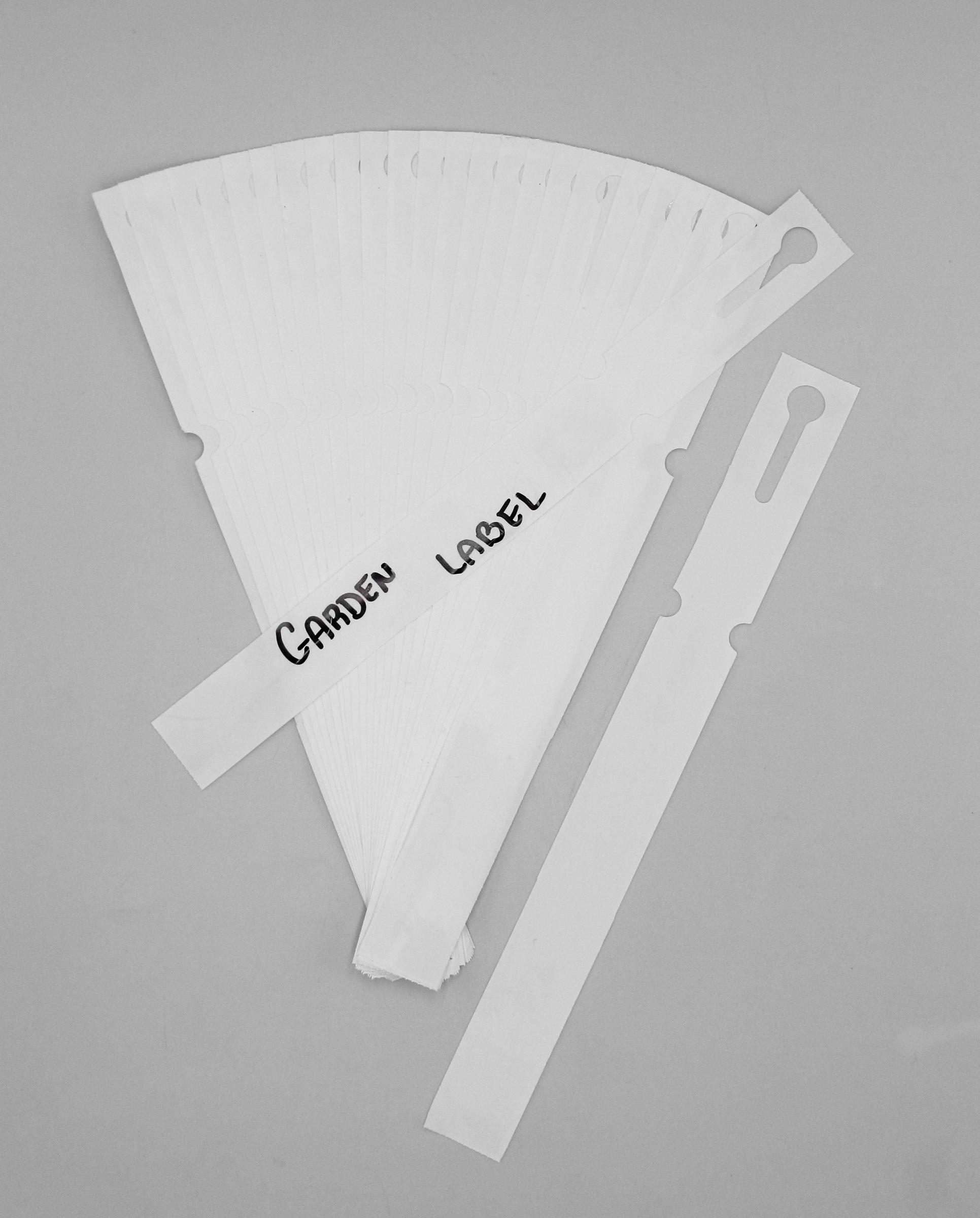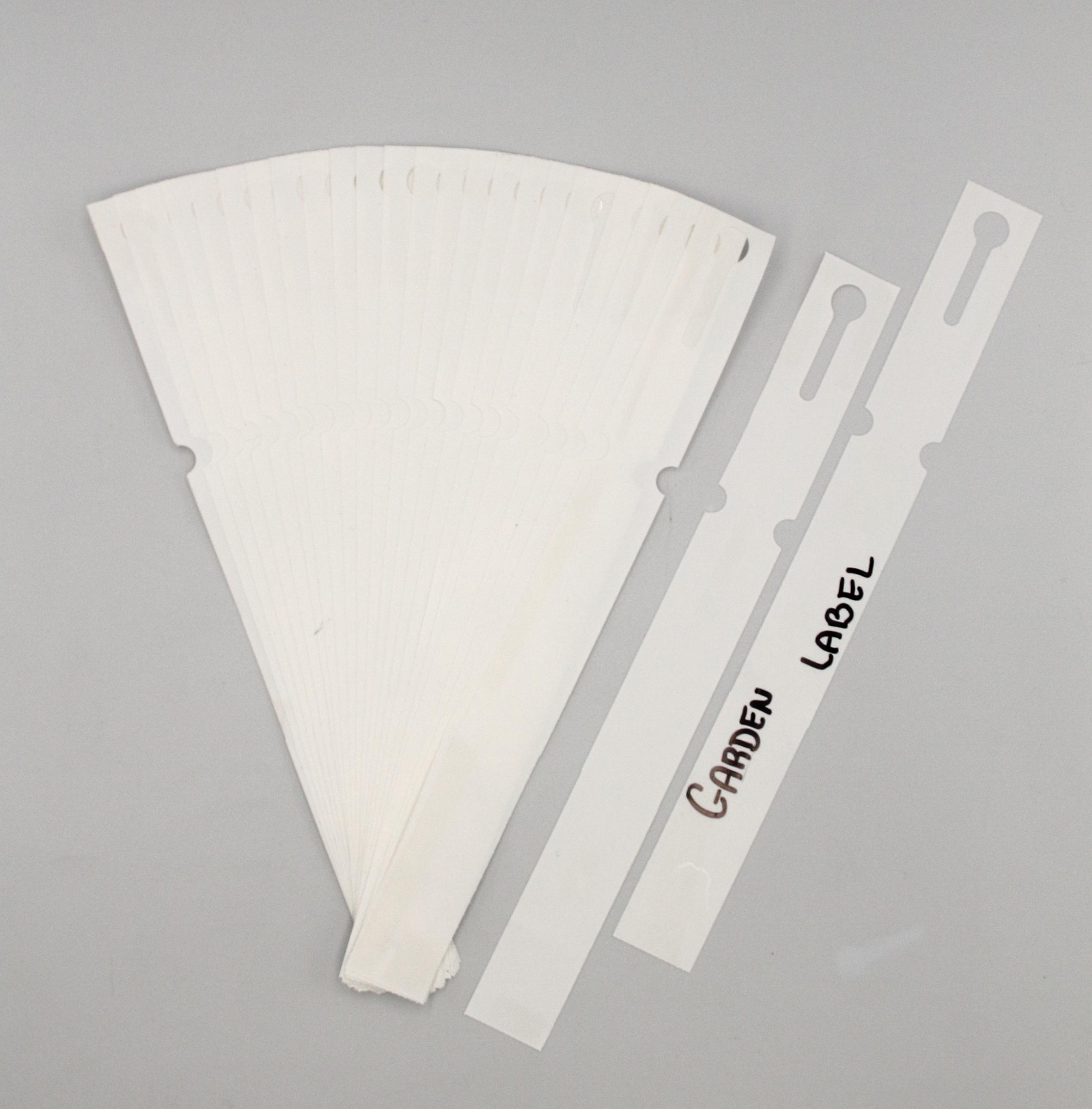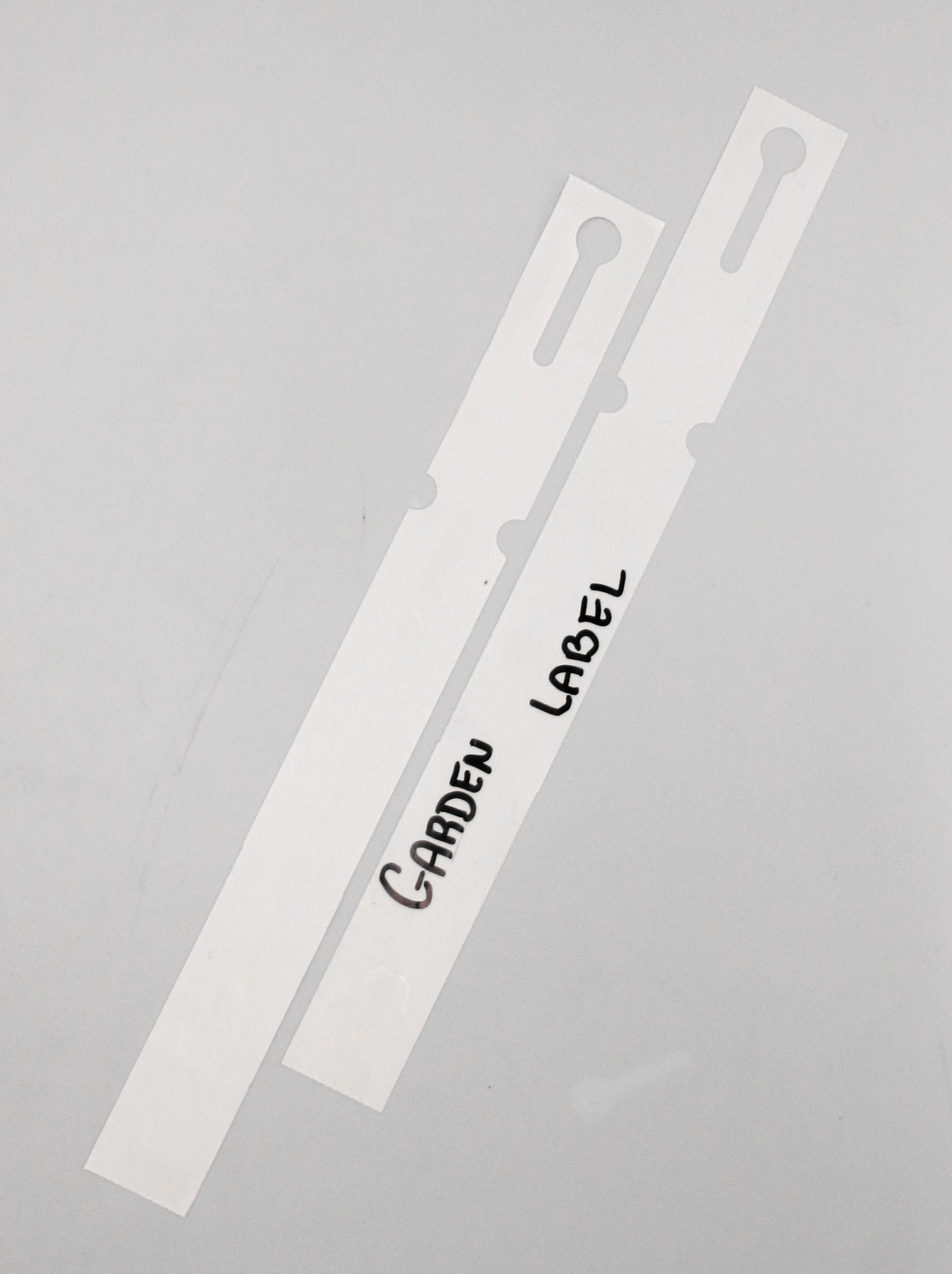 Profesjonalne etykiety ogrodnicze wykonane z trwałego HDPE o wymiarach 250x25mm (25×250), przeznaczone do druku termotransferowego oraz opisywania markerem permanentnym.