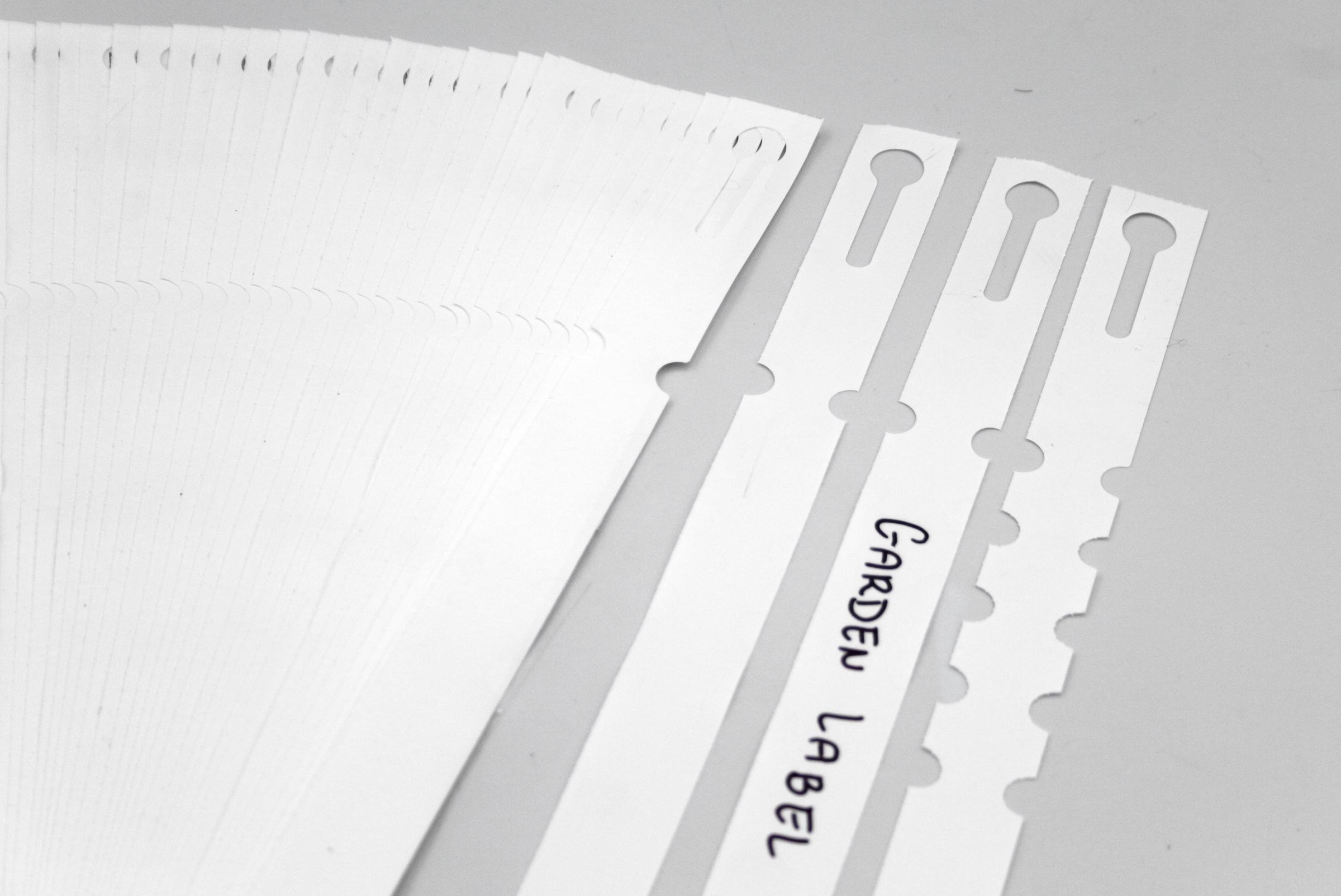 Profesjonalne etykiety ogrodnicze wykonane z trwałego HDPE o wymiarach 400x20mm (20×400), przeznaczone do opisywania markerem permanentnym.