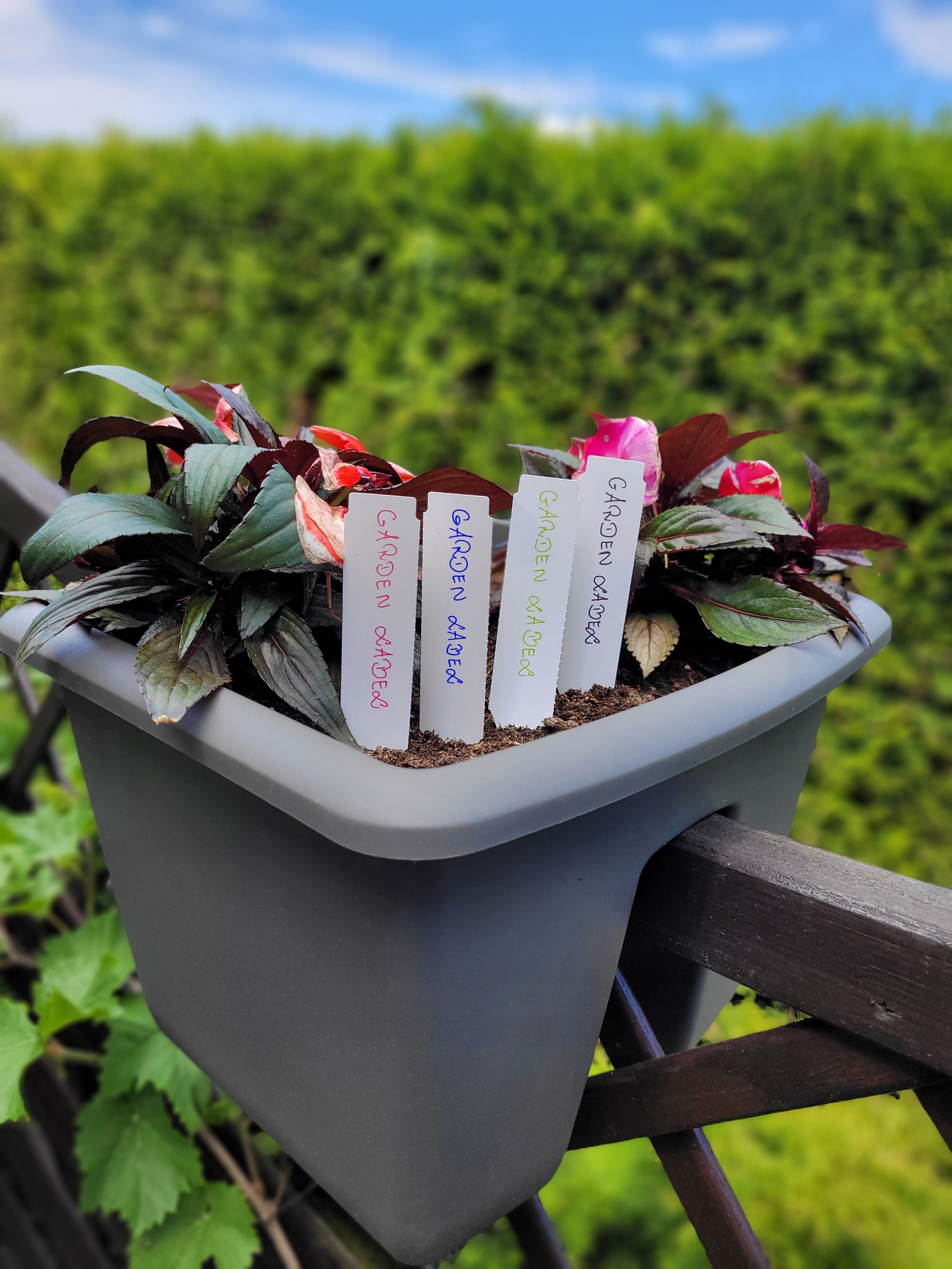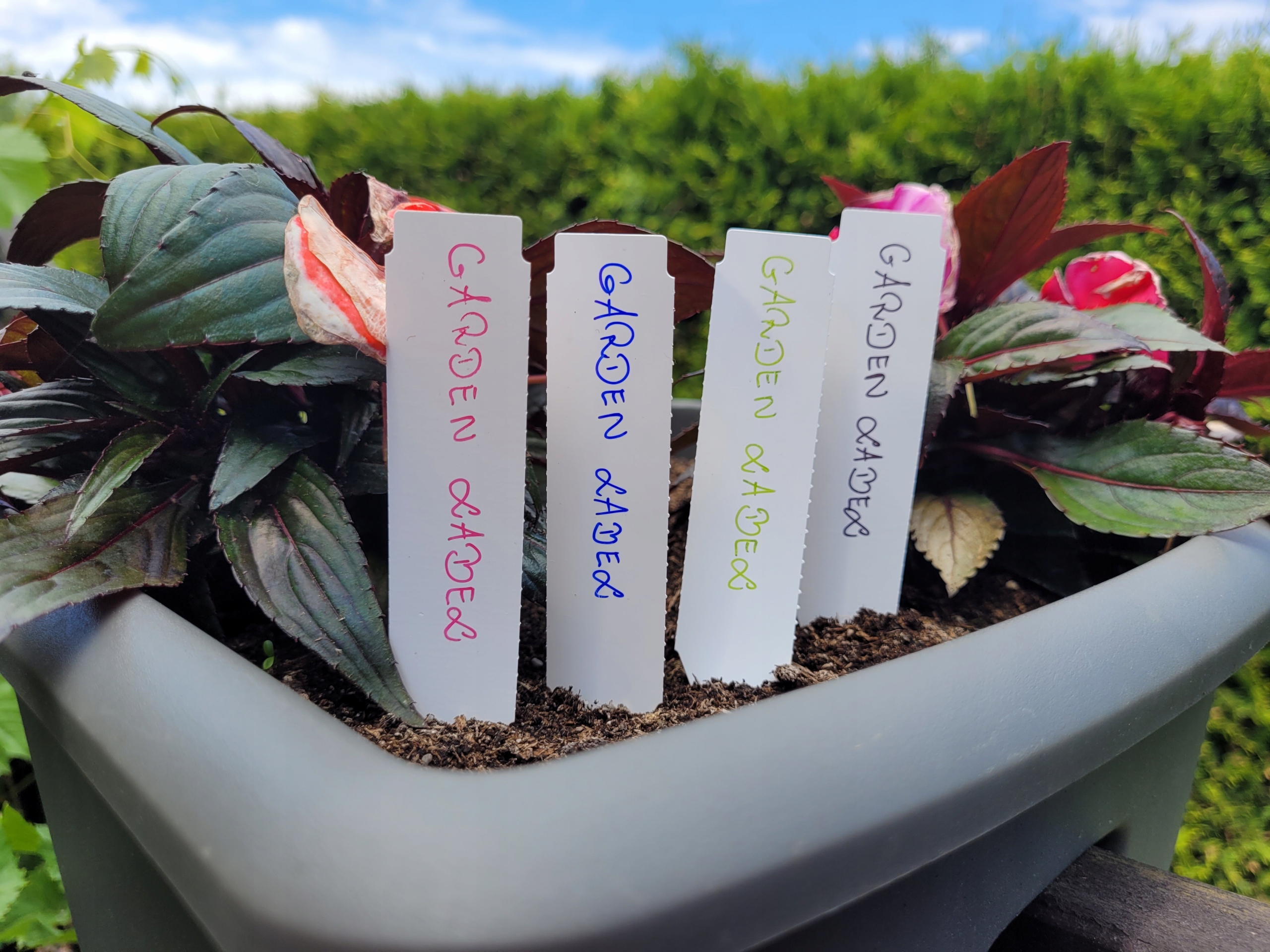 Etykiety są łatwe w użyciu – wystarczy je wtyknąć w ziemię obok rośliny i napisać jej nazwę lub inne istotne informacje. Perfekcyjnie nadają się do długoterminowego oznaczania ziół, kwiatów, warzyw czy owoców, co ułatwia pielęgnację i zarządzanie nawet największymi ogrodami. Dzięki zastosowaniu wysokiej jakości tuszu markerowego, napisy pozostają czytelne przez długi czas, a odporność na promieniowanie UV zapewnia, że kolory nie blakną nawet przy intensywnym nasłonecznieniu.