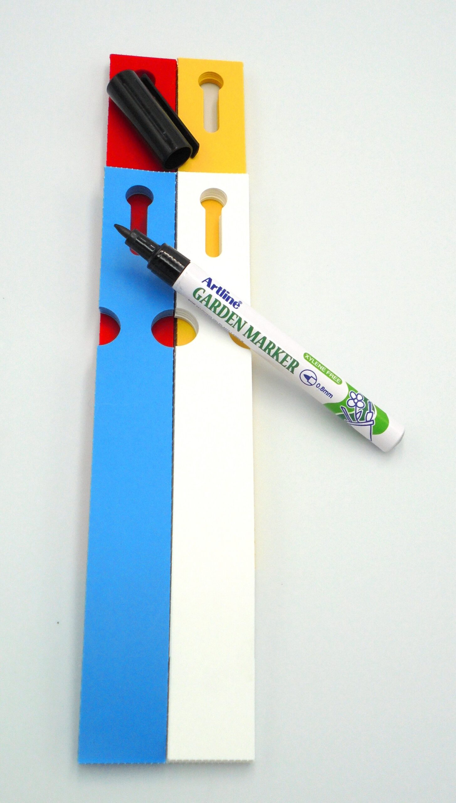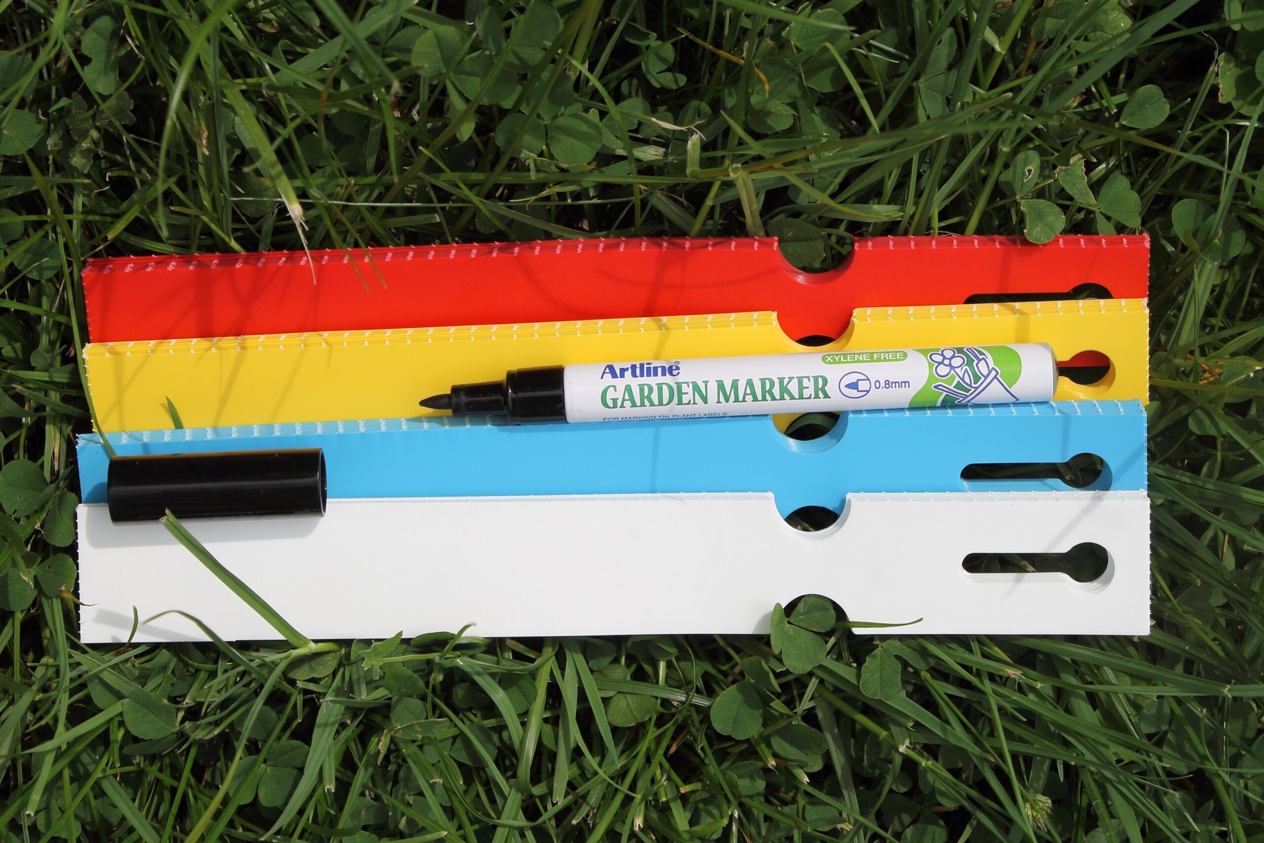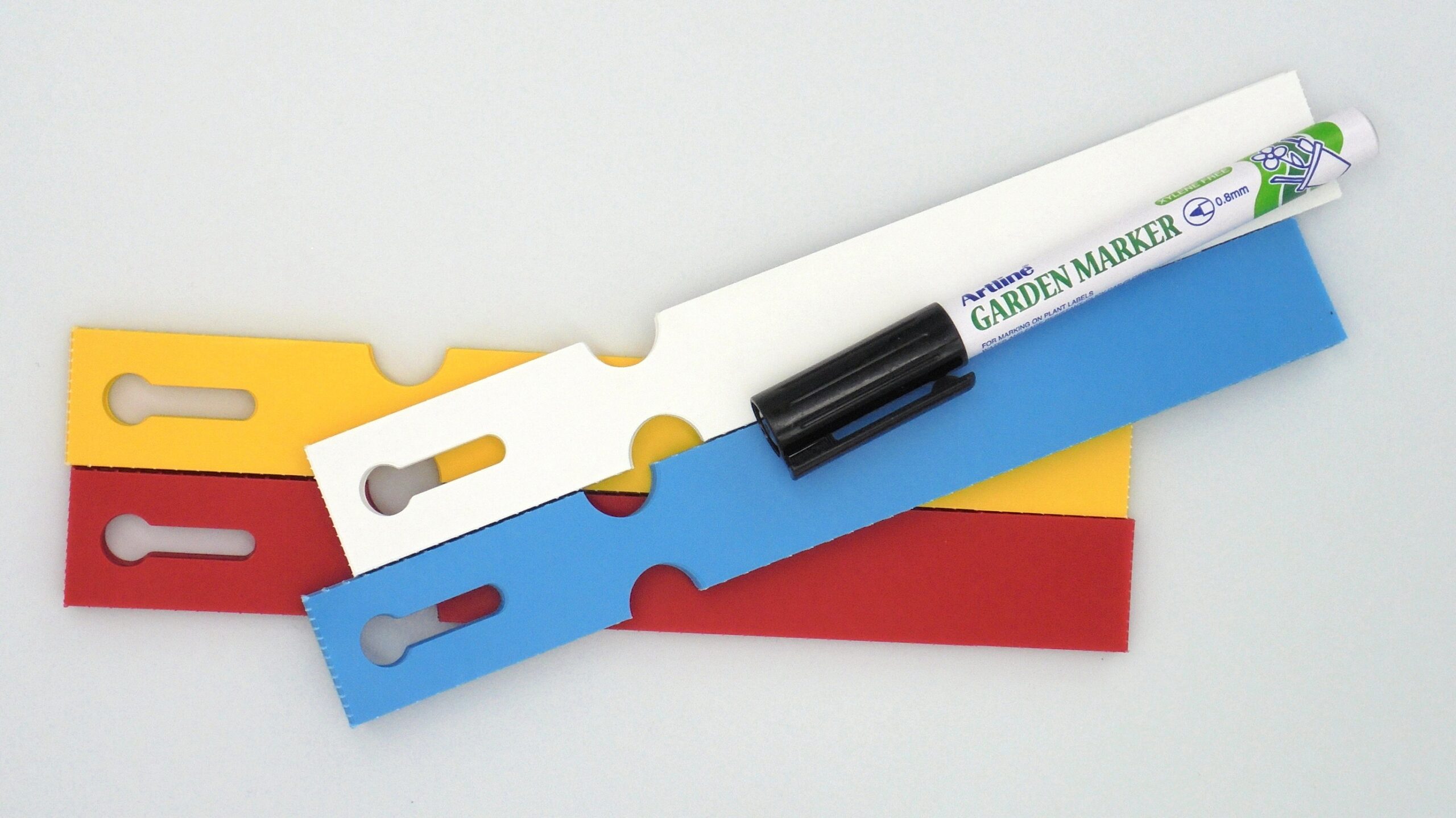 Profesjonalne etykiety ogrodnicze wykonane z trwałego HDPE o wymiarach 200×25 mm (25×200), przeznaczone do opisywania markerem permanentnym.