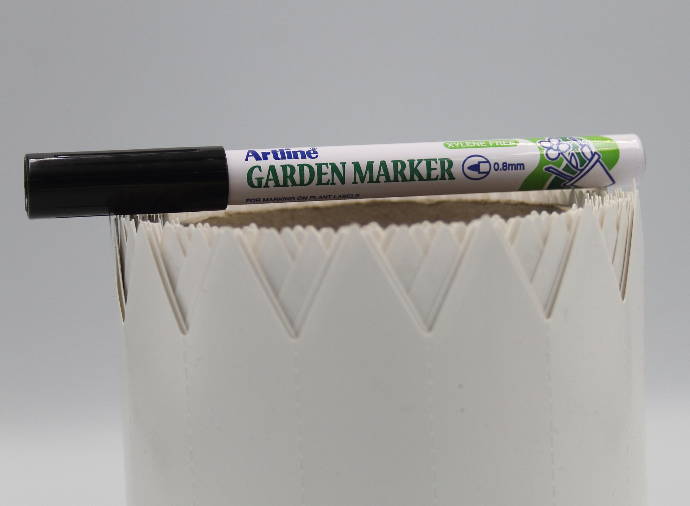 Permanentny czarny marker przeznaczony do trwałego opisania etykiet ogrodniczych. Wygodny w użyciu. Tusz wysycha natychmiastowo. Odporny na ścieranie, wilgoć oraz działania czynników zewnętrznych. Wytrzymały i wodoodporny .Fibrowa okrągła końcówka, 0 ,8 mm (szerokość linii). ,Dostępne kolory: czarny.