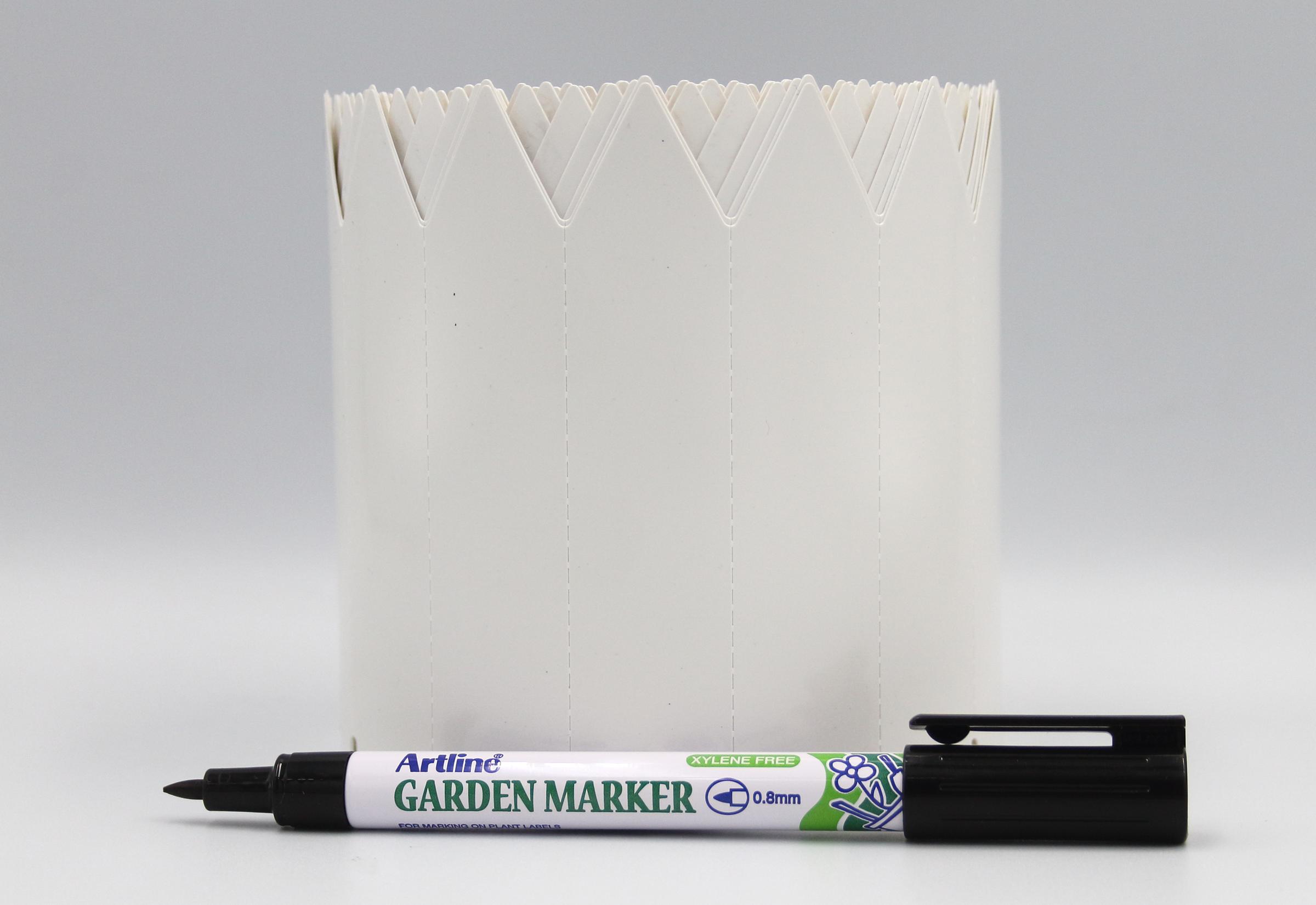 MARKER + Etykiety ogrodnicze wtykane to niezbędny element każdego ogrodu, szkółki czy uprawy roślinnej. Nasze etykiety o wymiarach 105 mm x 23,5 mm wykonane są z wytrzymałego materiału PVC, co zapewnia ich długotrwałość i odporność na warunki atmosferyczne. Białe etykiety są idealne do oznaczania zarówno roślin doniczkowych, jak i tych sadzonych w gruncie. Dzięki jednostronnej końcówce w formie strzałki, łatwo możesz je umieścić w ziemi, co jest szczególnie korzystne w przypadku sadzonek w multiplatach.