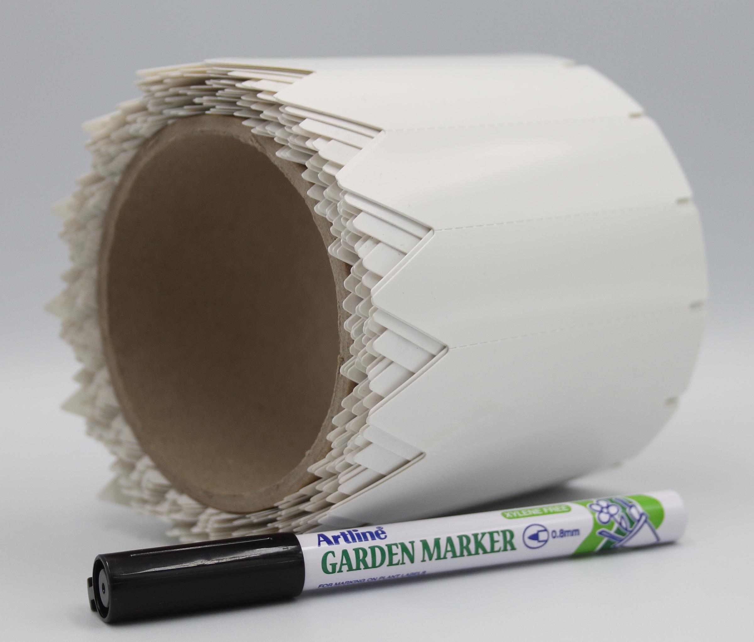 MARKER + Etykiety ogrodnicze wtykane to niezbędny element każdego ogrodu, szkółki czy uprawy roślinnej. Nasze etykiety o wymiarach 110 mm x 31,75 mm wykonane są z wytrzymałego materiału PVC, co zapewnia ich długotrwałość i odporność na warunki atmosferyczne. Białe etykiety są idealne do oznaczania zarówno roślin doniczkowych, jak i tych sadzonych w gruncie. Dzięki jednostronnej końcówce w formie strzałki, łatwo możesz je umieścić w ziemi, co jest szczególnie korzystne w przypadku sadzonek w multiplatach.