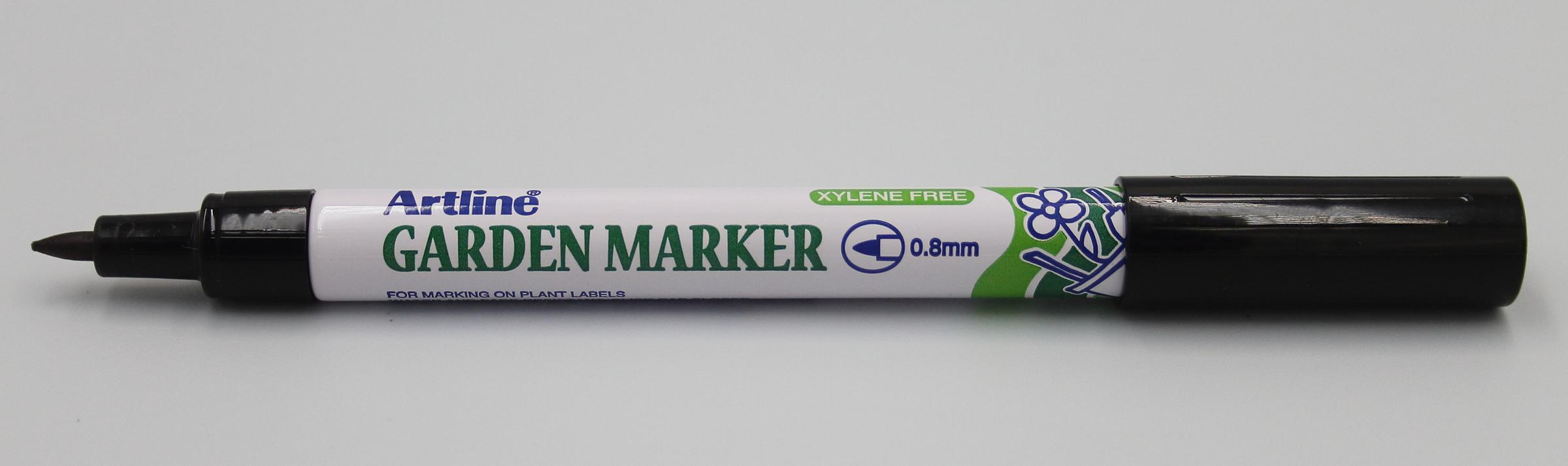 Permanentny czarny marker przeznaczony do trwałego opisania etykiet ogrodniczych. Wygodny w użyciu. Tusz wysycha natychmiastowo. Odporny na ścieranie, wilgoć oraz działania czynników zewnętrznych. Wytrzymały i wodoodporny .Fibrowa okrągła końcówka, 0 ,8 mm (szerokość linii). ,Dostępne kolory: czarny.