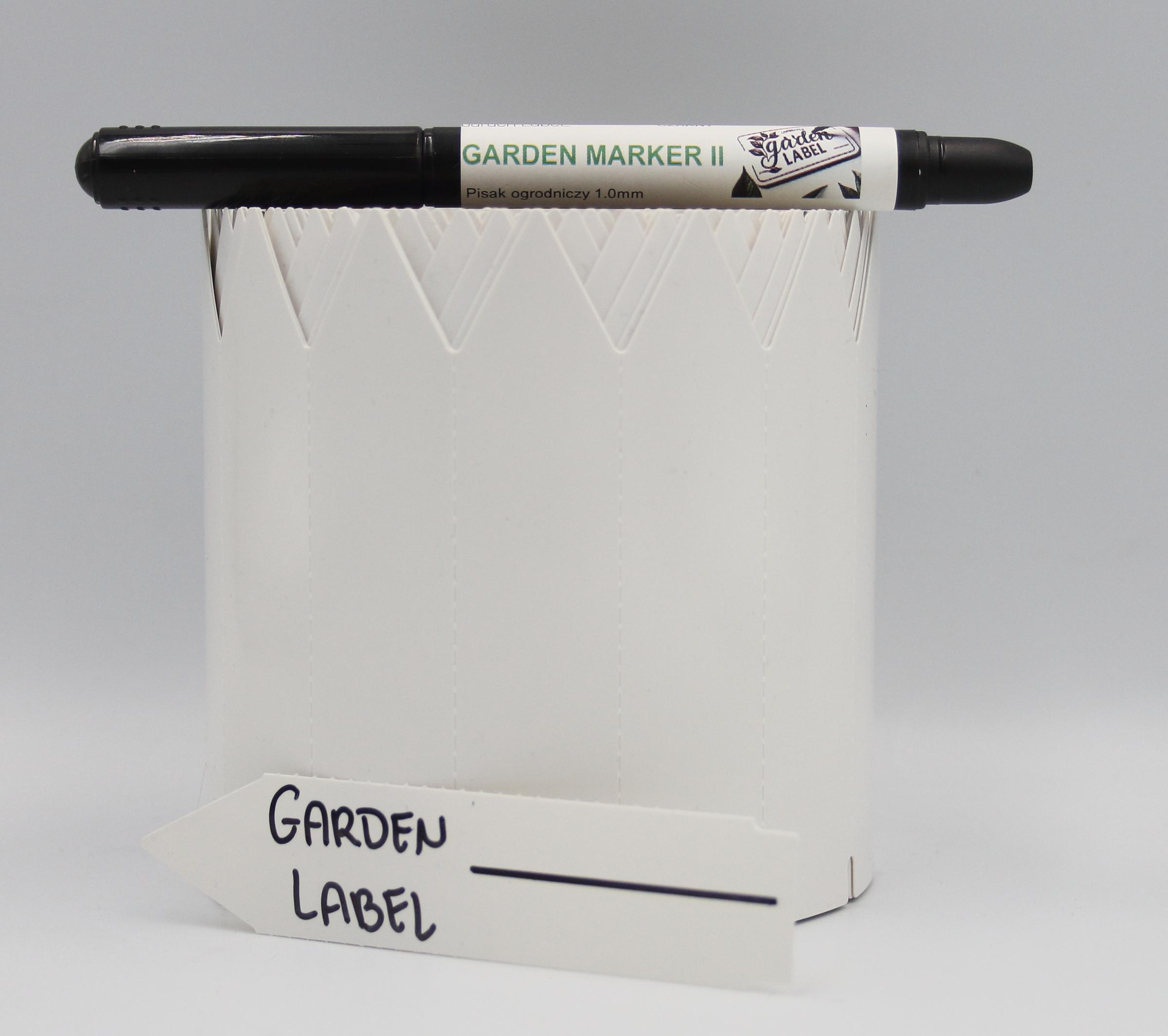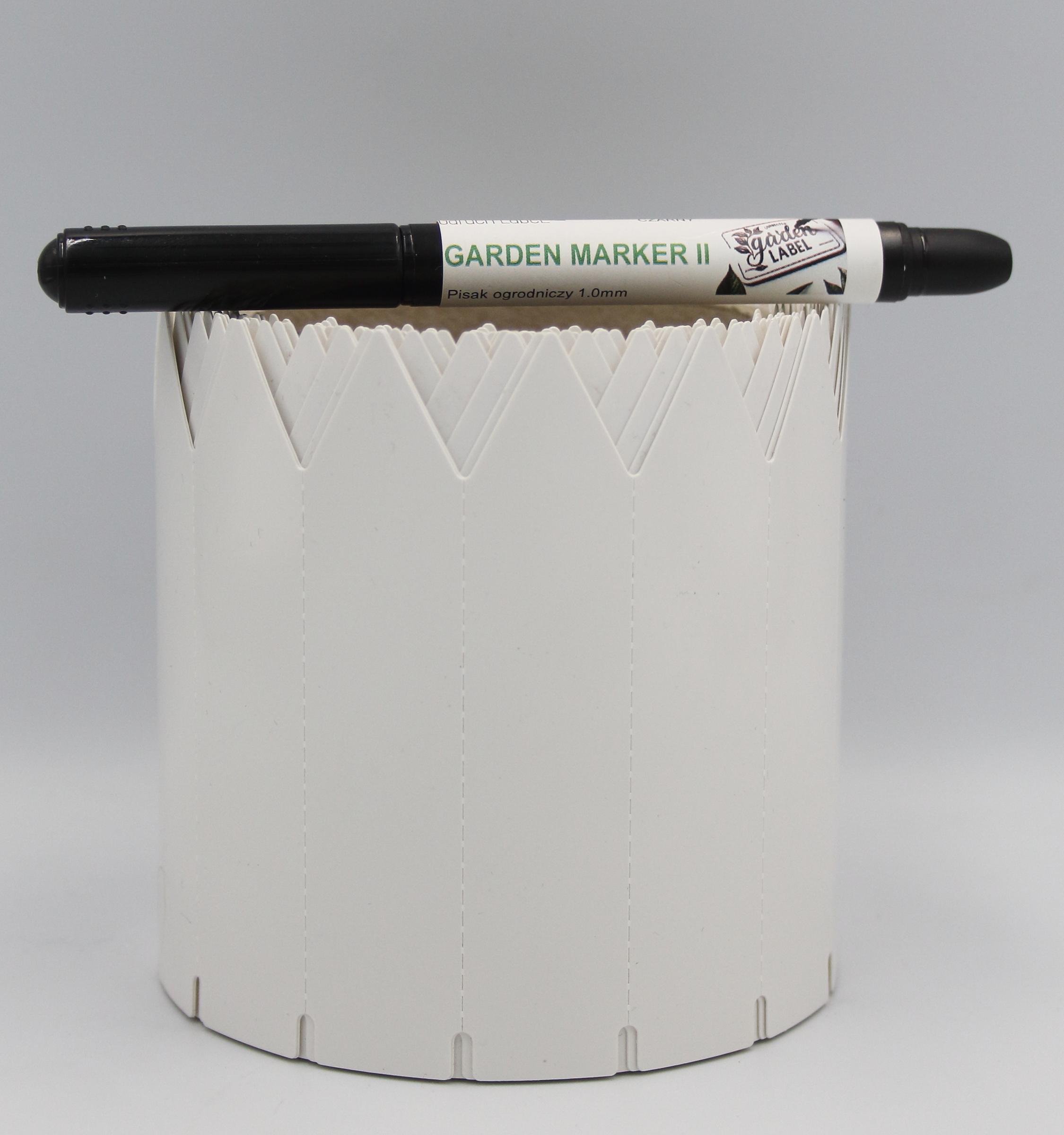 MARKER II + Etykiety ogrodnicze wtykane to niezbędny element każdego ogrodu, szkółki czy uprawy roślinnej. Nasze etykiety o wymiarach 110mm x 31,75 mm wykonane są z wytrzymałego materiału PVC, co zapewnia ich długotrwałość i odporność na warunki atmosferyczne. Białe etykiety są idealne do oznaczania zarówno roślin doniczkowych, jak i tych sadzonych w gruncie. Dzięki jednostronnej końcówce w formie strzałki, łatwo możesz je umieścić w ziemi, co jest szczególnie korzystne w przypadku sadzonek w multiplatach.