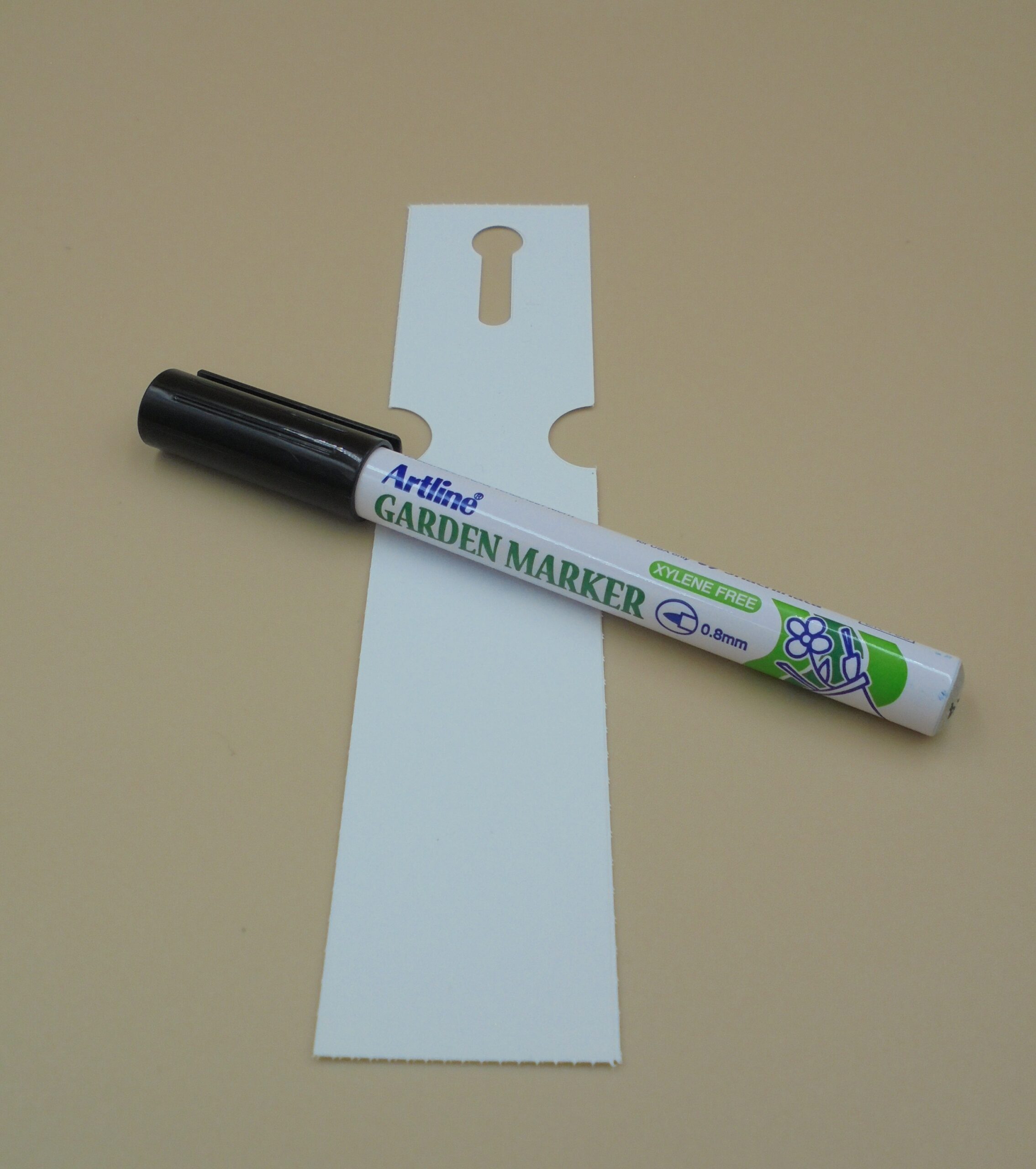 Profesjonalne etykiety ogrodnicze wykonane z trwałego HDPE o wymiarach 163x33mm (33×163), przeznaczone do opisywania markerem permanentnym.